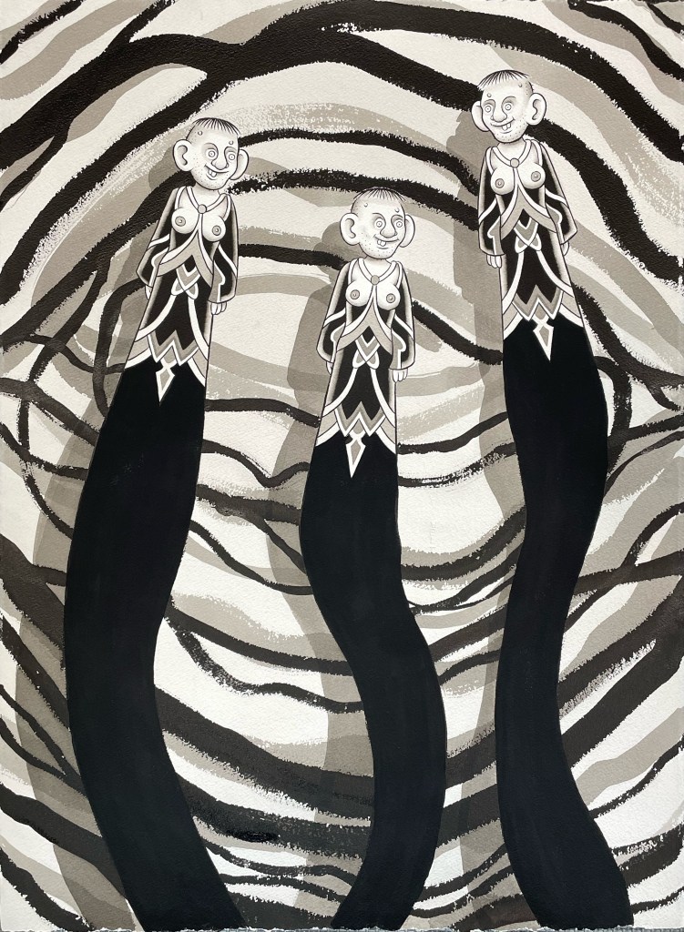 all paintings are unframed ink on paper unless otherwise noted
